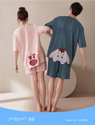 Jingyun [cool feeling] Disney couple pajamas women's summer cotton short sleeve men's home wear leisure suit