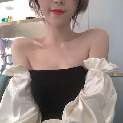 Actual Shot of Summer Skirt of 2019 with Bubble Sleeve and Bodybuilding Collar