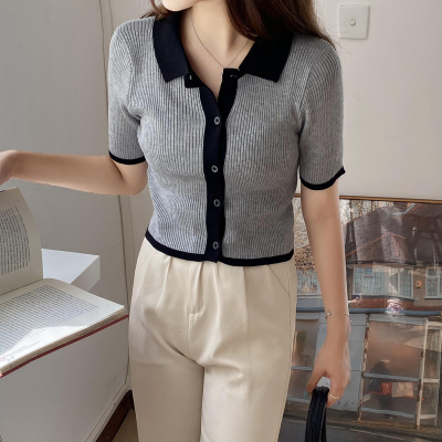 New spring net red temperament Lapel short dress slim grey short sleeve women fashion